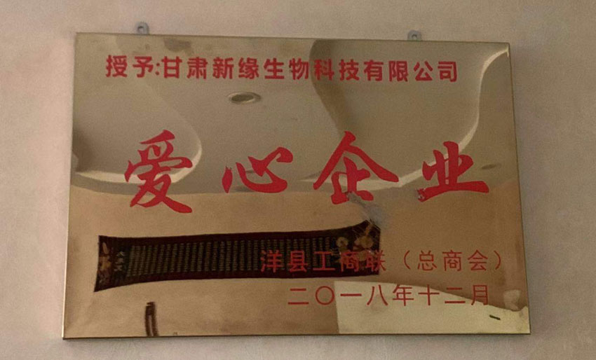 為了感謝申總的大愛(ài)無(wú)私,洋縣工商聯(lián)(總商會(huì))授予申總個(gè)人愛(ài)心使者稱號(hào),授予甘肅新緣生物科技有限公司愛(ài)心企業(yè)稱號(hào)。