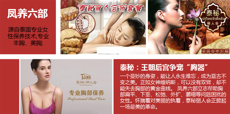 鳳養(yǎng)六部——源自泰國皇室豐胸秘方,讓女人乳此多嬌的專業(yè)美胸、健胸的亞洲第一胸部品牌。